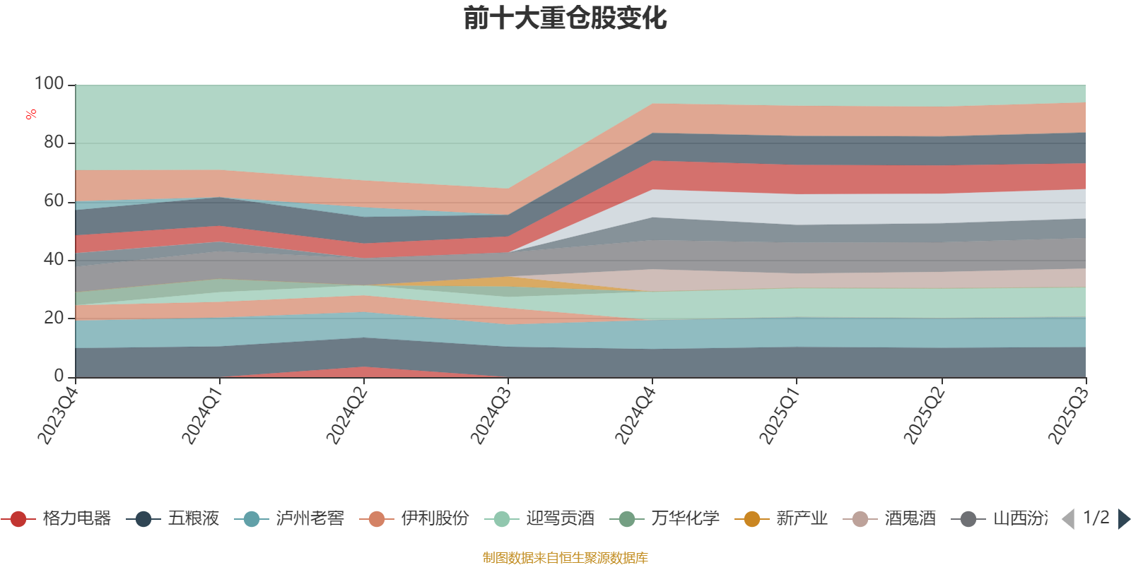 该基金持股集中度较高,且持股标的较为稳定,近2年前十大重仓股集中度长期超过60%。截至2025年三季度末,基金十大重仓股分别是古井贡酒、山西汾酒、泸州老窖、贵州茅台、五粮液、迎驾贡酒、今世缘、洋河股份、舍得酒业、酒鬼酒。