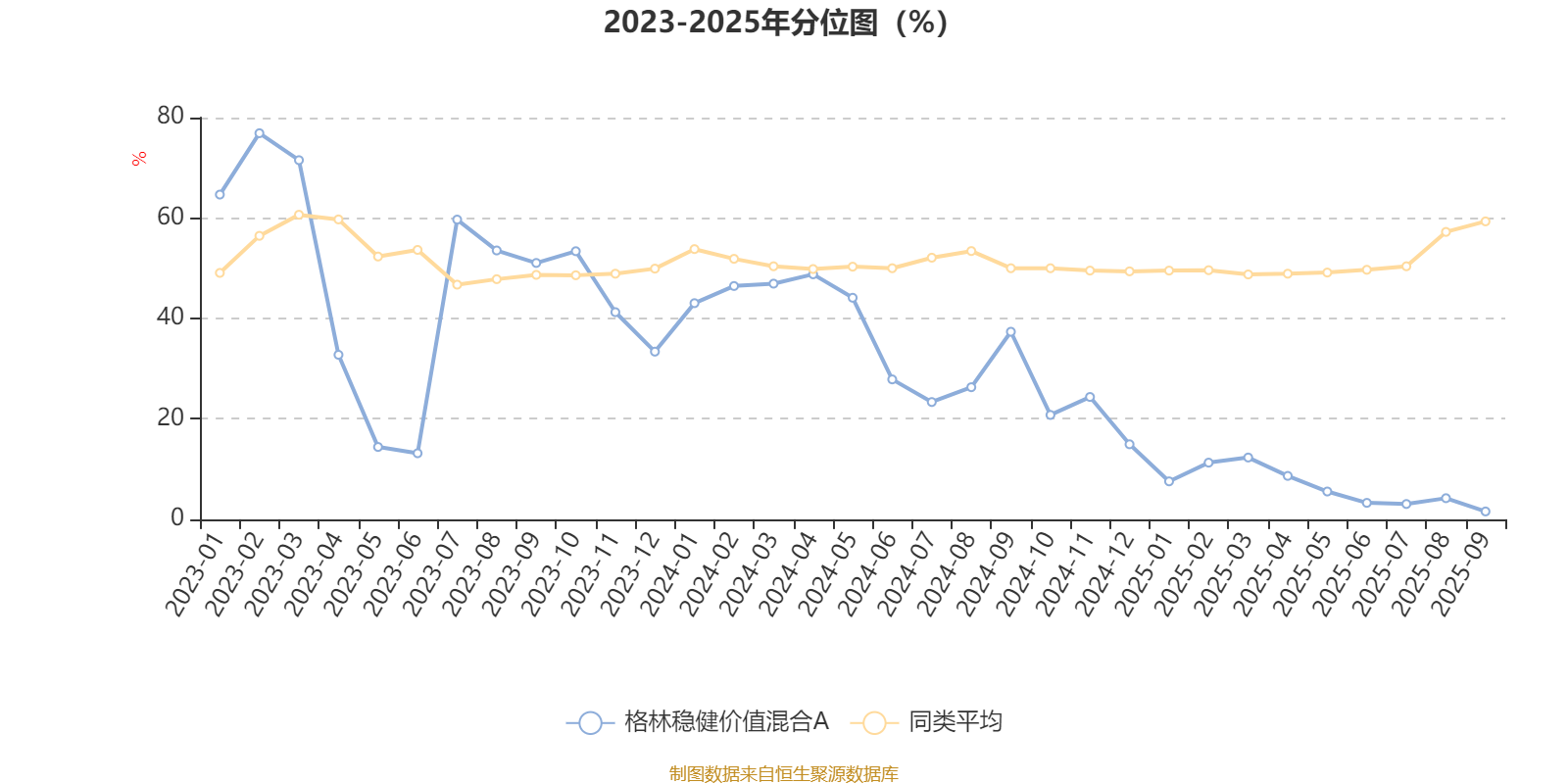 通过所选区间该基金净值增长率分位图,可以观察该基金与同类基金业绩比较情况。图为坐标原点到区间内某时点的净值增长率在同类基金中的分位数。