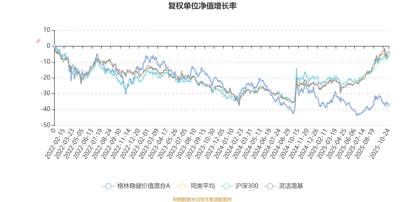 截至10月24日,格林稳健价值混合A近三个月复权单位净值增长率为0.73%,位于同类可比基金1172/1287;近半年复权单位净值增长率为-2.82%,位于同类可比基金1280/1287;近一年复权单位净值增长率为-12.72%,位于同类可比基金1284/1287;近三年复权单位净值增长率为-15.50%,位于同类可比基金1184/1286。