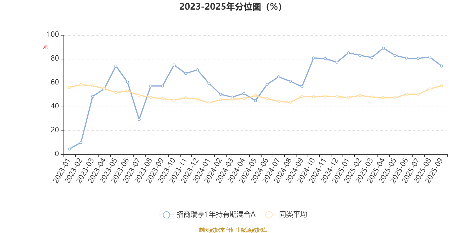 通过所选区间该基金净值增长率分位图,可以观察该基金与同类基金业绩比较情况。图为坐标原点到区间内某时点的净值增长率在同类基金中的分位数。