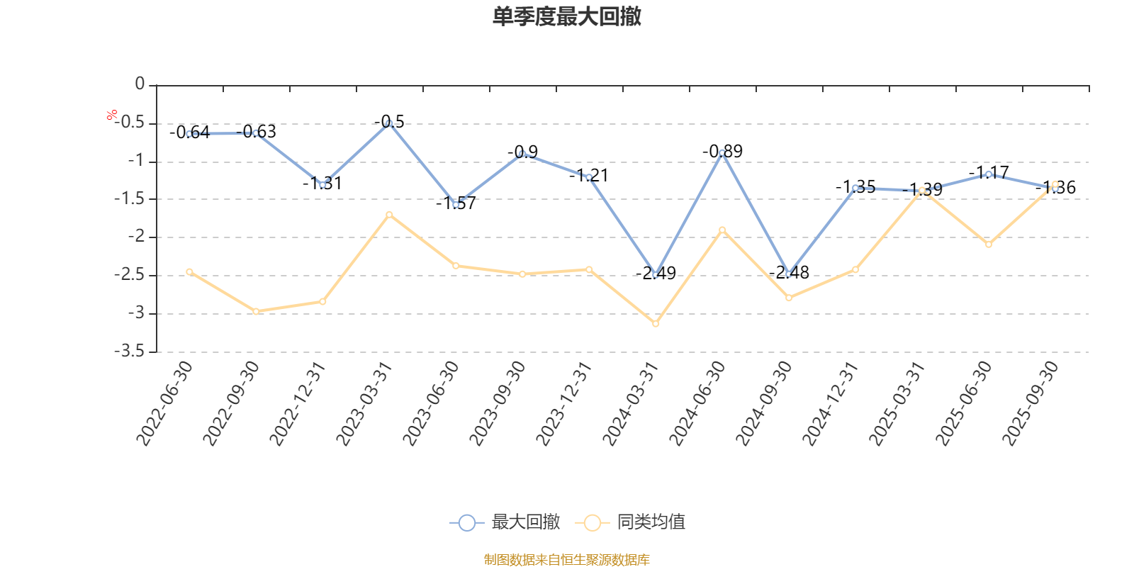截至10月24日,基金近三年最大回撤为4.33%,同类可比基金排名144/552。单季度最大回撤出现在2024年一季度,为2.49%。