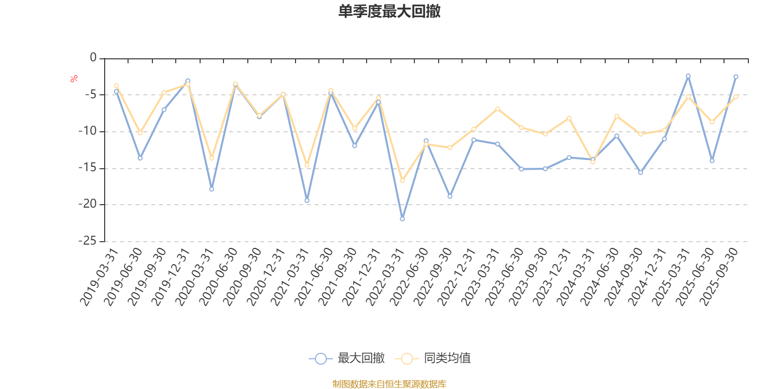 通过所选区间该基金净值增长率分位图,可以观察该基金与同类基金业绩比较情况。图为坐标原点到区间内某时点的净值增长率在同类基金中的分位数。