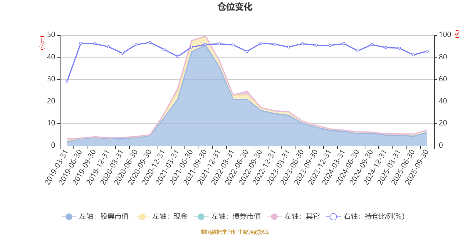 据定期报告数据统计,近三年平均股票仓位为89.2%,同类平均为72.16%。2020年三季度末基金达到93.46%的最高仓位,2019年一季度末最低,为57.91%。