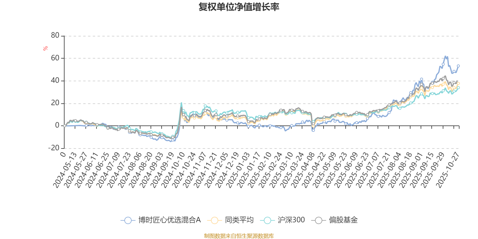 截至10月27日,博时匠心优选混合A近三个月复权单位净值增长率为24.54%,位于同类可比基金143/689;近半年复权单位净值增长率为47.83%,位于同类可比基金96/688;近一年复权单位净值增长率为38.33%,位于同类可比基金176/653。