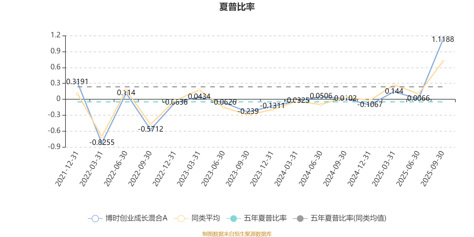 截至9月30日,基金近三年夏普比率为0.5392,位于同类可比基金240/518。