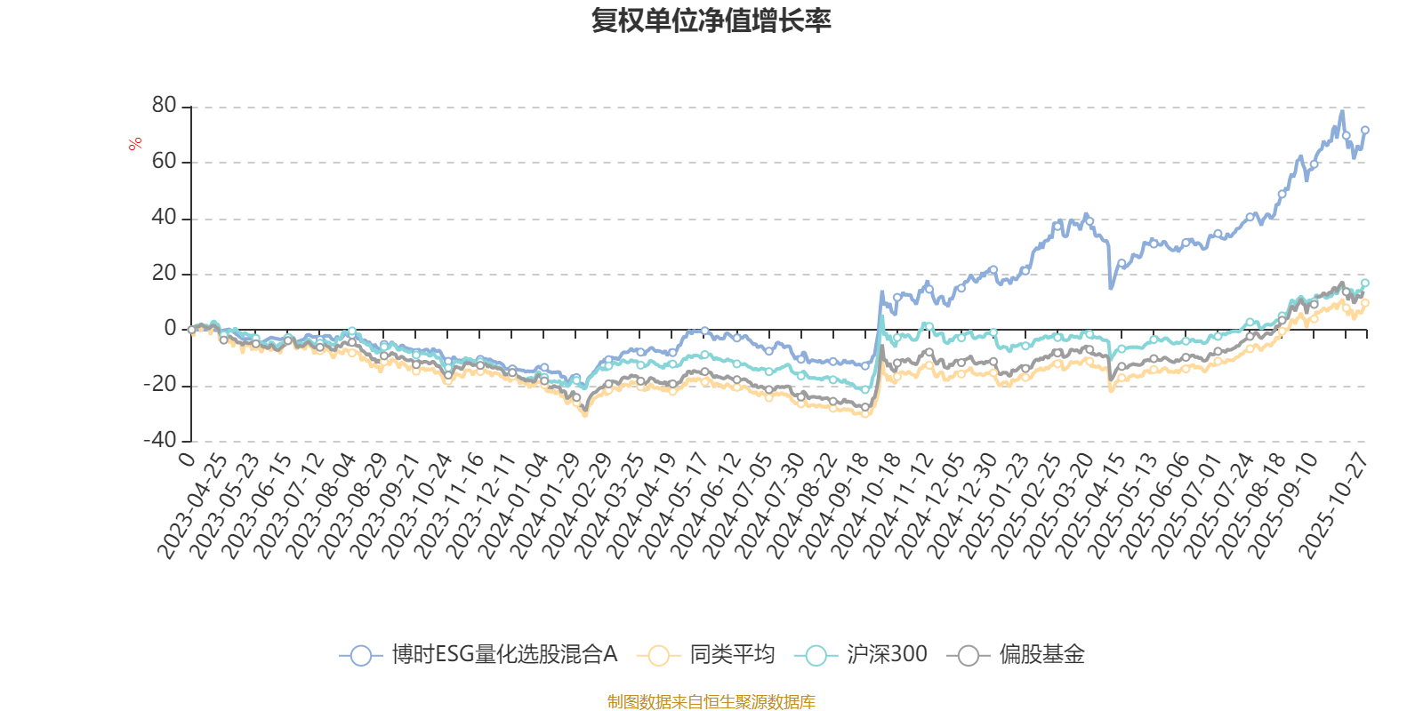 截至10月27日,博时ESG量化选股混合A近三个月复权单位净值增长率为22.11%,位于同类可比基金181/621;近半年复权单位净值增长率为35.46%,位于同类可比基金217/619;近一年复权单位净值增长率为52.38%,位于同类可比基金98/611。