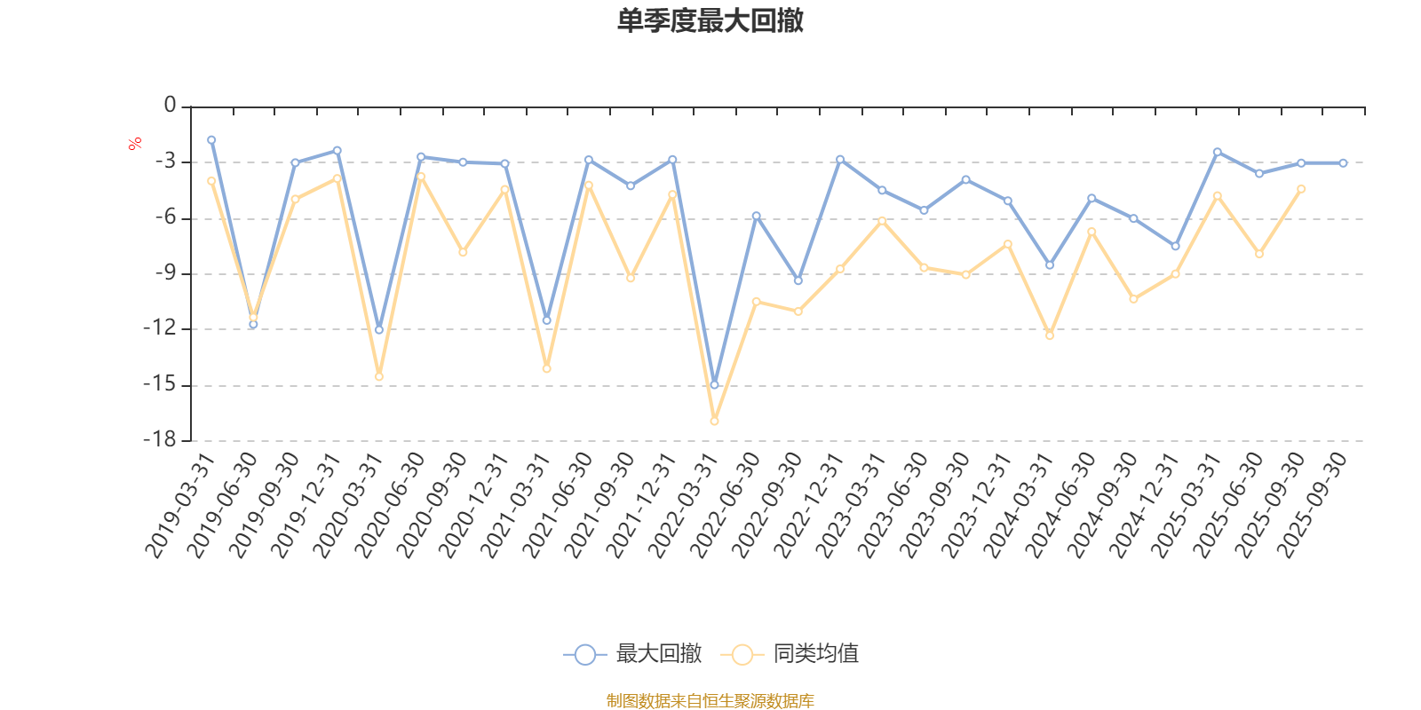 截至10月27日,基金近三年最大回撤为17.64%,同类可比基金排名22/117。单季度最大回撤出现在2022年一季度,为14.99%。