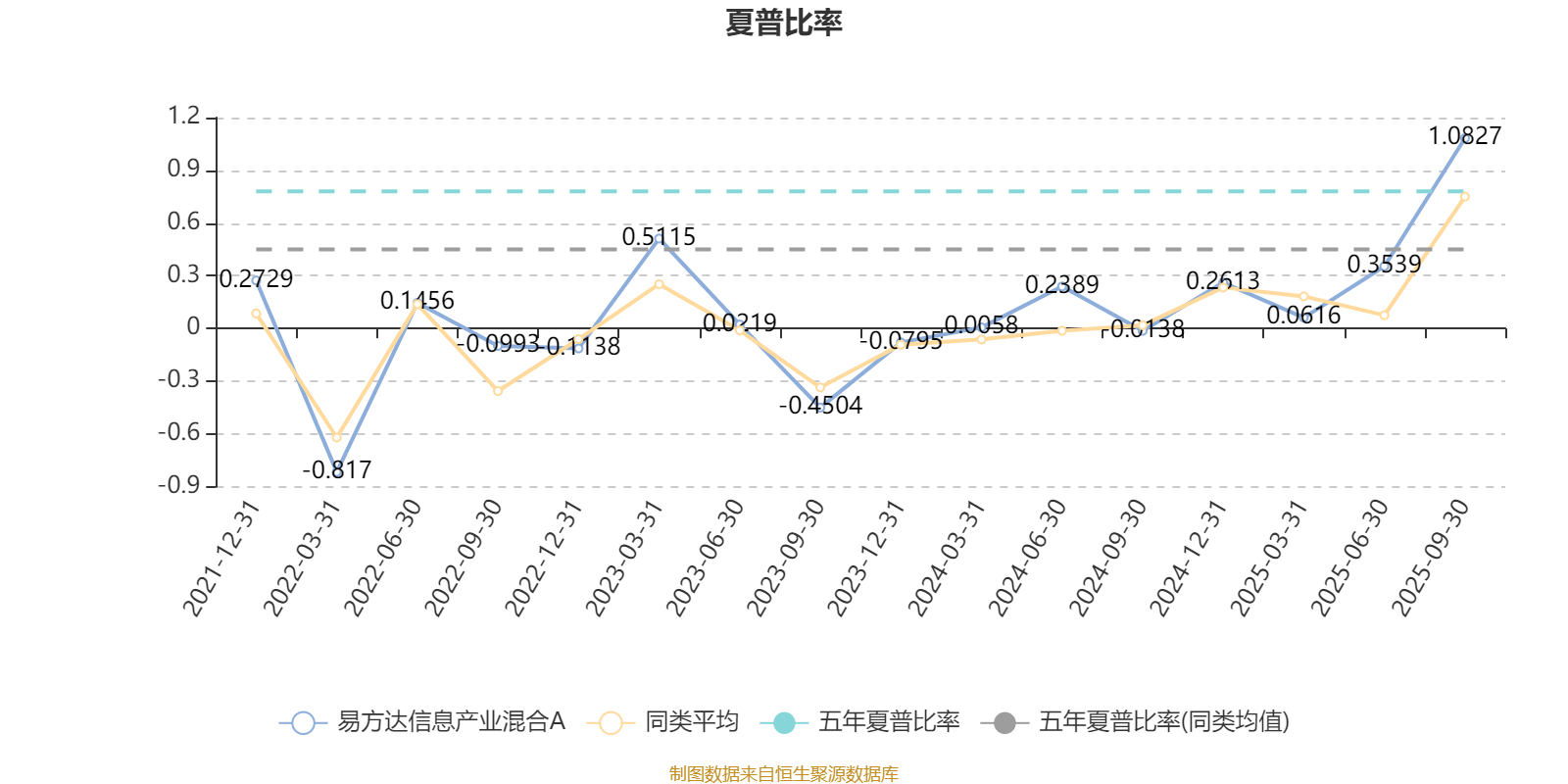 截至9月30日,基金近三年夏普比率为1.2095,位于同类可比基金7/159。