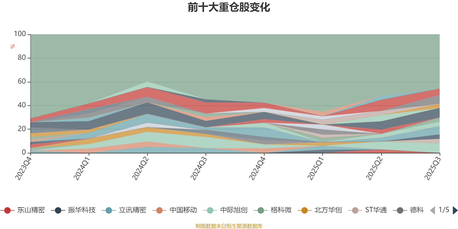 截至2025年三季度末,基金十大重仓股分别是中际旭创、沪电股份、工业富联、深南电路、新易盛、ST华通、生益科技、澜起科技、寒武纪、欣旺达。