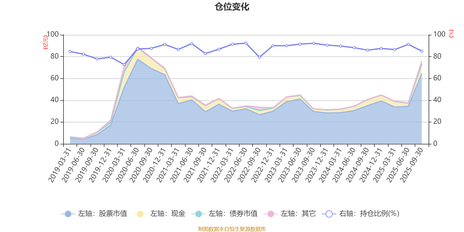 据定期报告数据统计,近三年平均股票仓位为89.04%,同类平均为86.71%。2022年上半年末基金达到92.35%的最高仓位,2020年一季度末最低,为72.8%。