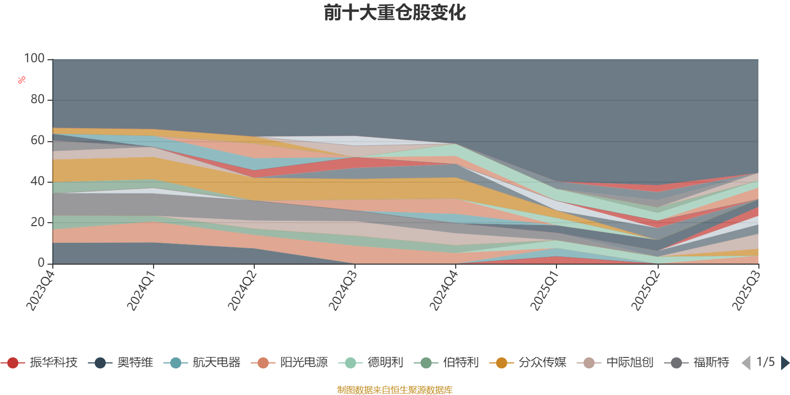 截至2025年三季度末,基金十大重仓股分别是中际旭创、工业富联、ST华通、芯原股份、宁德时代、阳光电源、新易盛、大金重工、隆基绿能、分众传媒。
