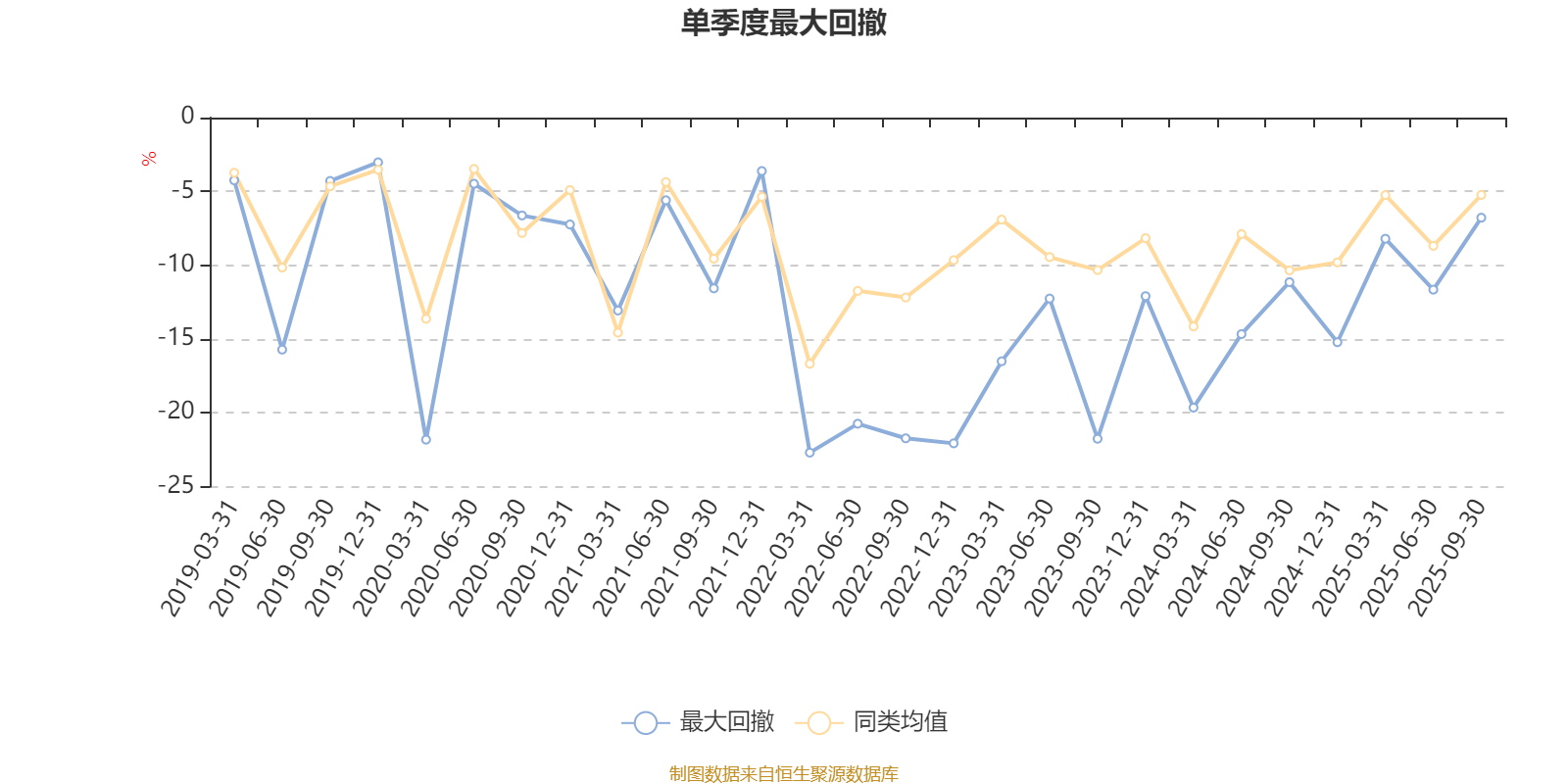 通过所选区间该基金净值增长率分位图,可以观察该基金与同类基金业绩比较情况。图为坐标原点到区间内某时点的净值增长率在同类基金中的分位数。
