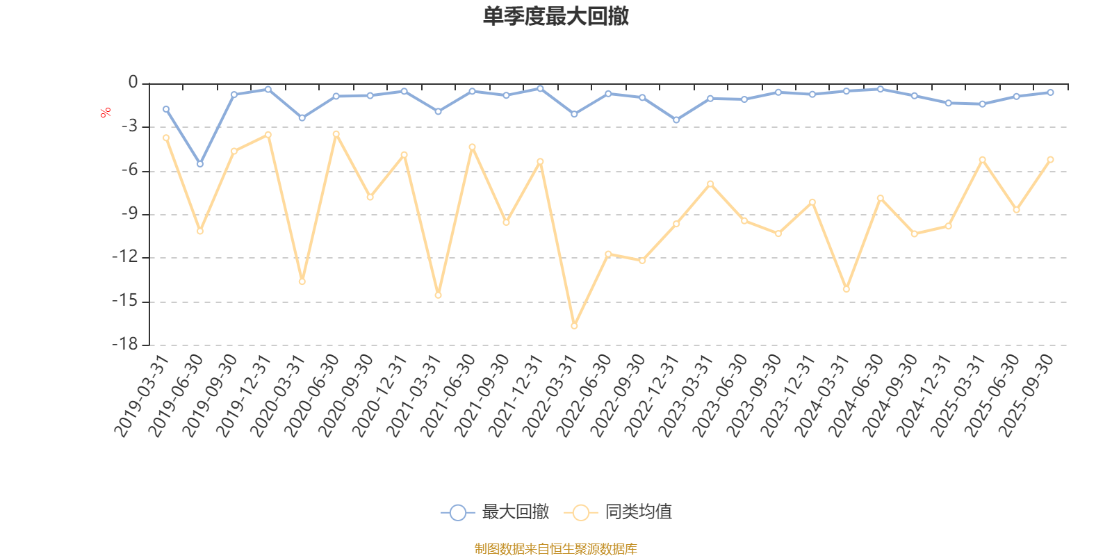 截至10月27日,基金近三年最大回撤为2.04%,同类可比基金排名20/1265。单季度最大回撤出现在2019年二季度,为5.54%。