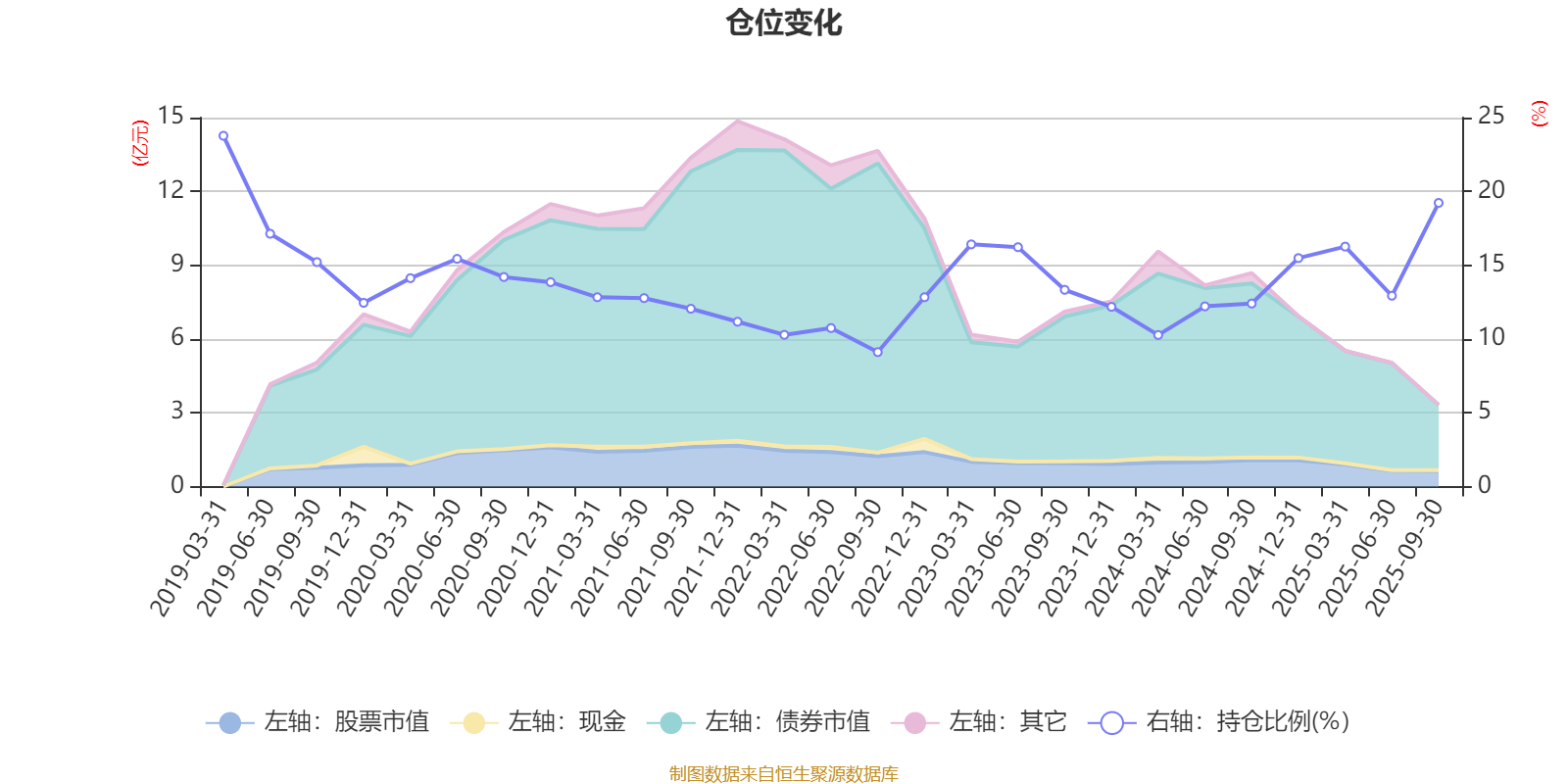 据定期报告数据统计,近三年平均股票仓位为14.15%,同类平均为72.14%。2019年一季度末基金达到23.77%的最高仓位,2022年三季度末最低,为9.11%。