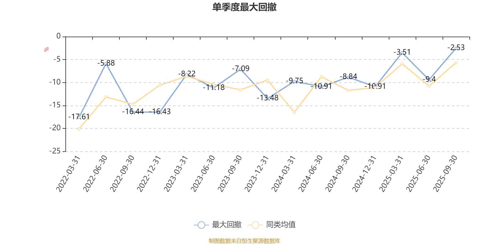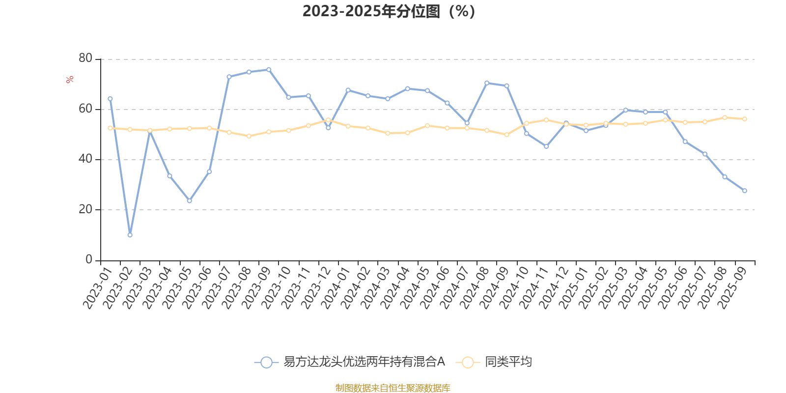 通过所选区间该基金净值增长率分位图,可以观察该基金与同类基金业绩比较情况。图为坐标原点到区间内某时点的净值增长率在同类基金中的分位数。