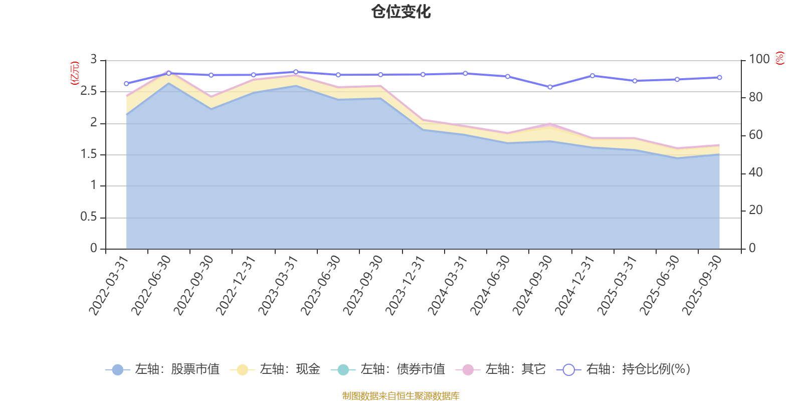 据定期报告数据统计,近三年平均股票仓位为91.21%,同类平均为85.52%。2023年一季度末基金达到93.82%的最高仓位,2024年三季度末最低,为85.77%。