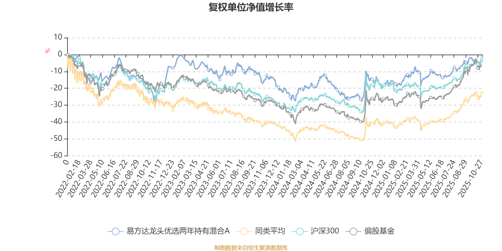 截至10月27日,易方达龙头优选两年持有混合A近三个月复权单位净值增长率为4.84%,位于同类可比基金533/621;近半年复权单位净值增长率为11.43%,位于同类可比基金561/619;近一年复权单位净值增长率为12.99%,位于同类可比基金518/611;近三年复权单位净值增长率为25.43%,位于同类可比基金191/518。