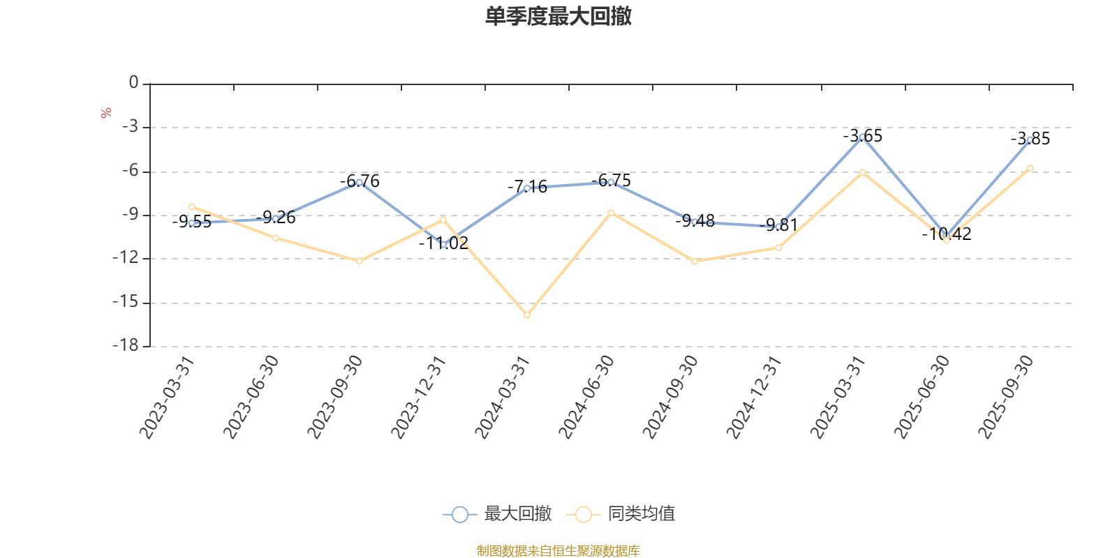 通过所选区间该基金净值增长率分位图,可以观察该基金与同类基金业绩比较情况。图为坐标原点到区间内某时点的净值增长率在同类基金中的分位数。