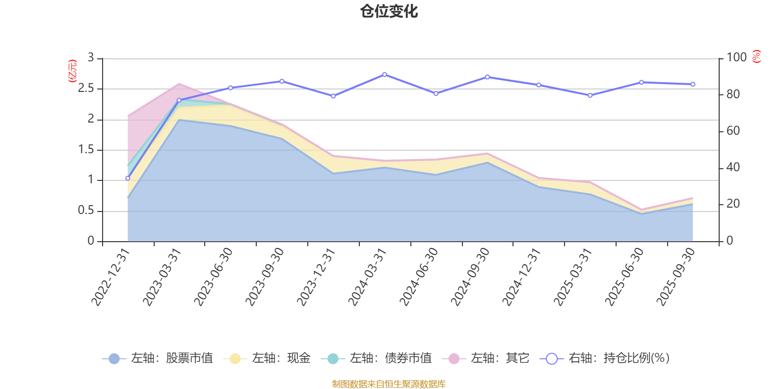 据定期报告数据统计,近三年平均股票仓位为80.19%,同类平均为83.5%。2024年一季度末基金达到91.16%的最高仓位,2022年末最低,为34.5%。