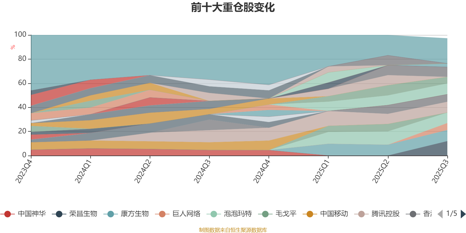 该基金持股集中度较高。截至2025年三季度末,基金十大重仓股分别是荣昌生物、康方生物、百济神州、腾讯控股、泡泡玛特、信达生物、香港交易所、巨人网络、农夫山泉、中芯国际。