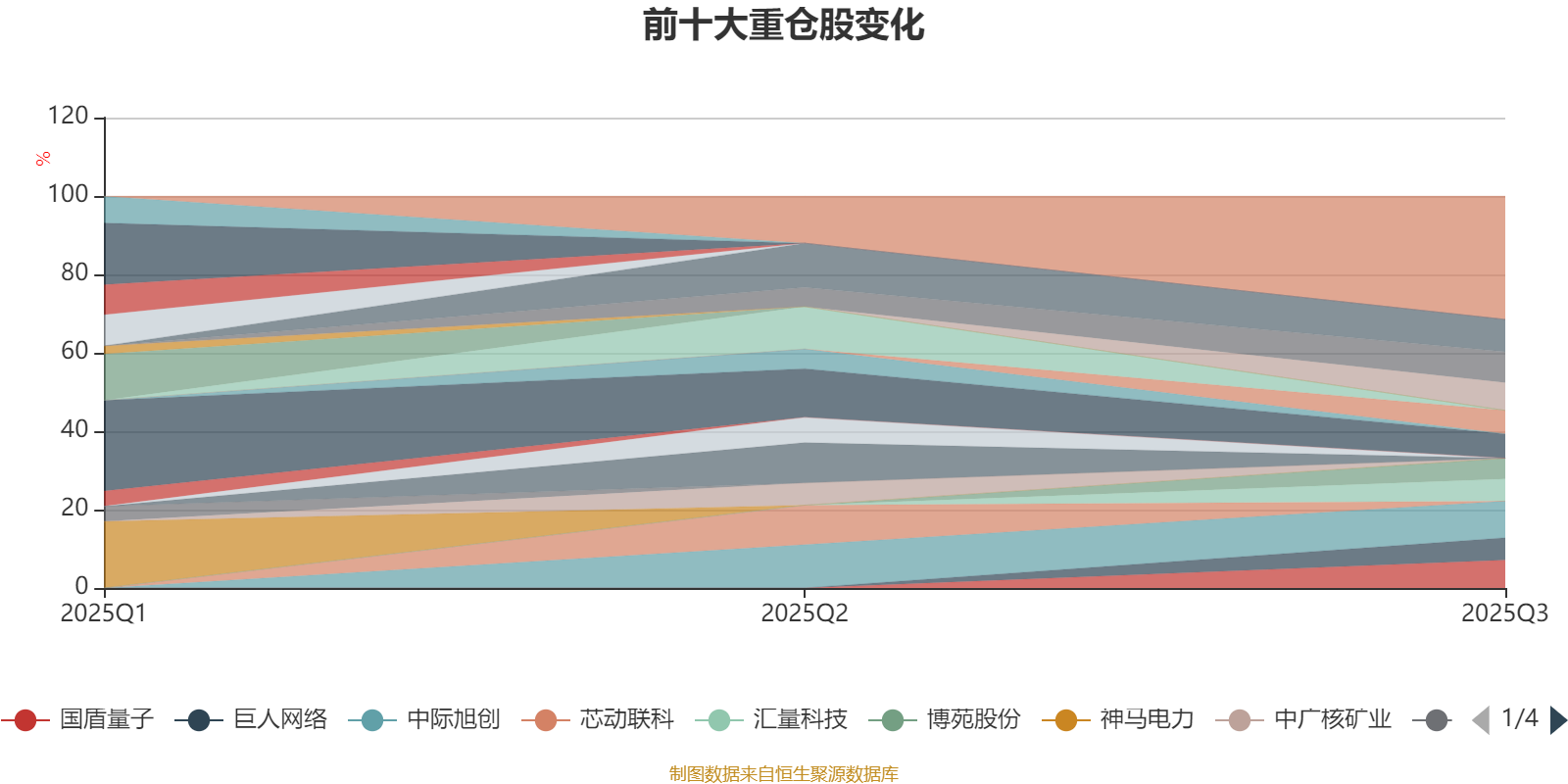 该基金持股集中度较高。截至2025年三季度末,基金十大重仓股分别是中际旭创、新易盛、天孚通信、国盾量子、工业富联、匠心家居、中芯国际、巨人网络、汇量科技、博苑股份。