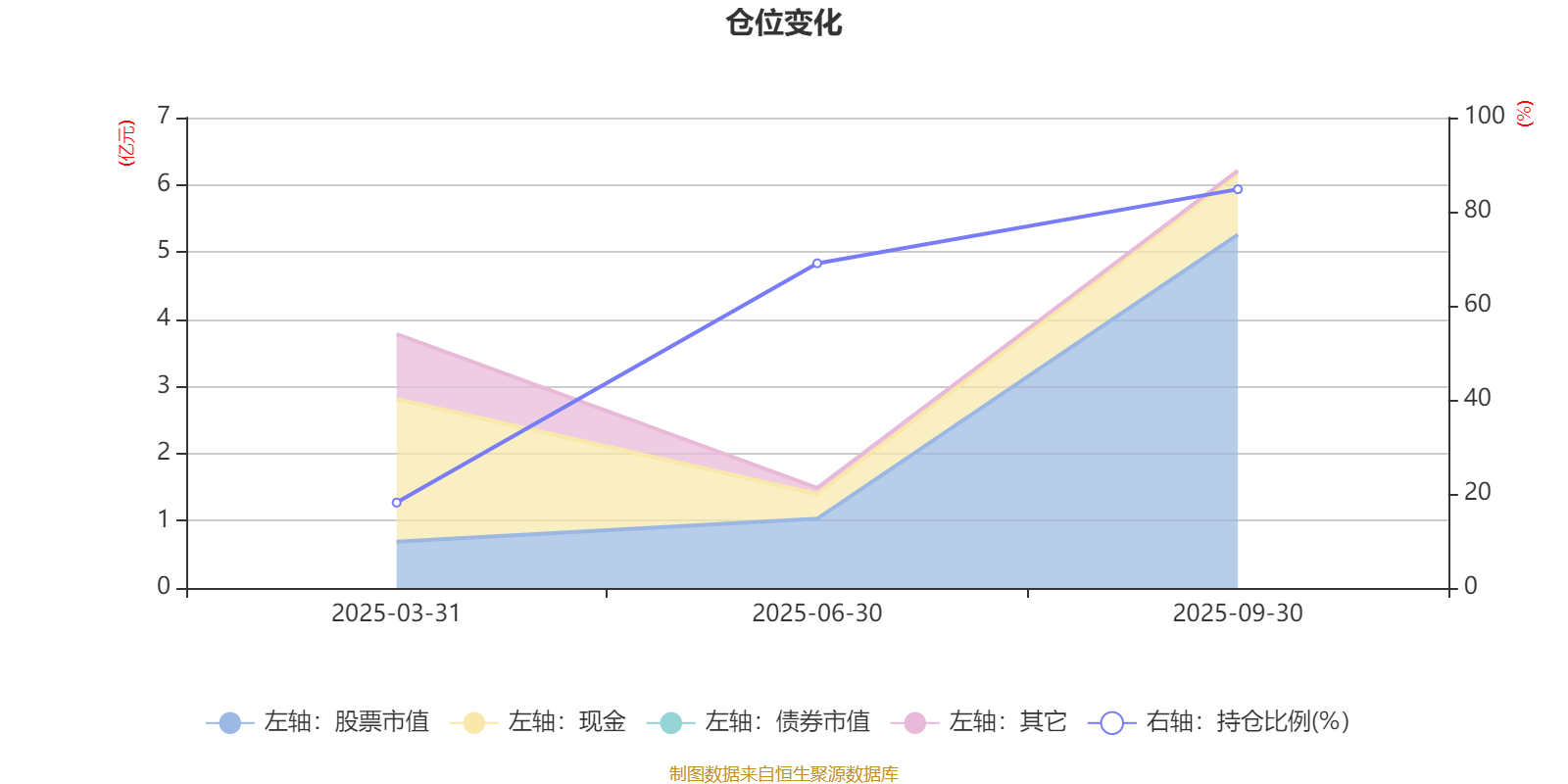 据定期报告数据统计,成立以来平均股票仓位为57.32%,同类平均为86.74%。2025年三季度末基金达到84.77%的最高仓位,2025年一季度末最低,为18.16%。