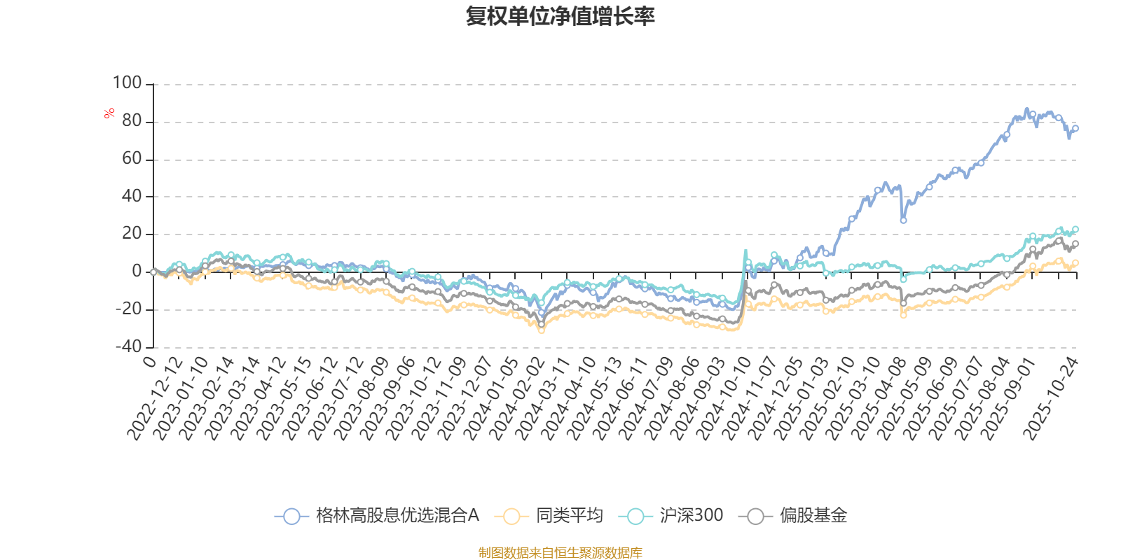 截至10月24日,格林高股息优选混合A近三个月复权单位净值增长率为3.98%,位于同类可比基金571/689;近半年复权单位净值增长率为24.35%,位于同类可比基金377/688;近一年复权单位净值增长率为74.97%,位于同类可比基金16/653。