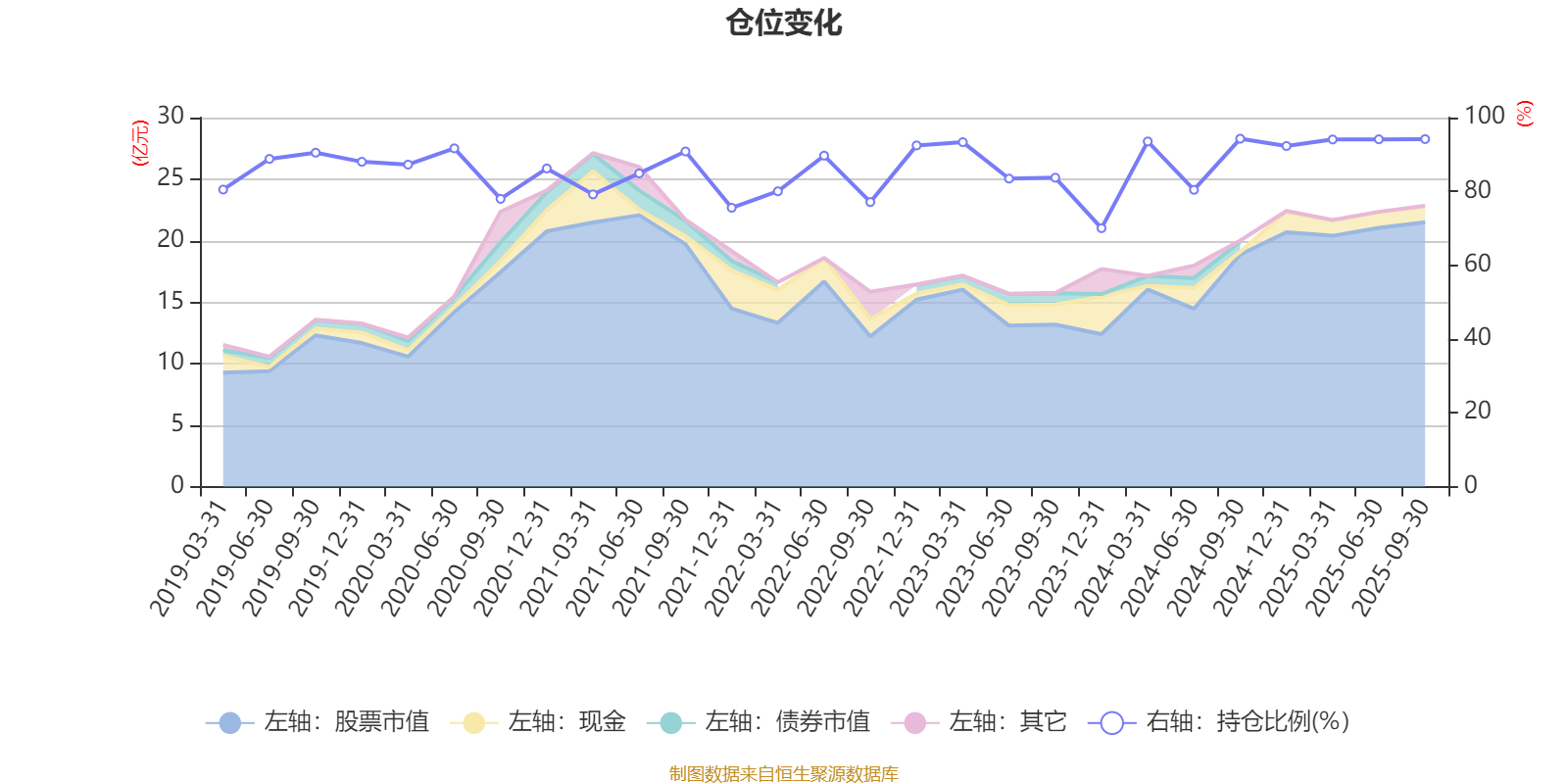 据定期报告数据统计,近三年平均股票仓位为88.83%,同类平均为85.99%。2024年三季度末基金达到94.28%的最高仓位,2023年末最低,为70.03%。