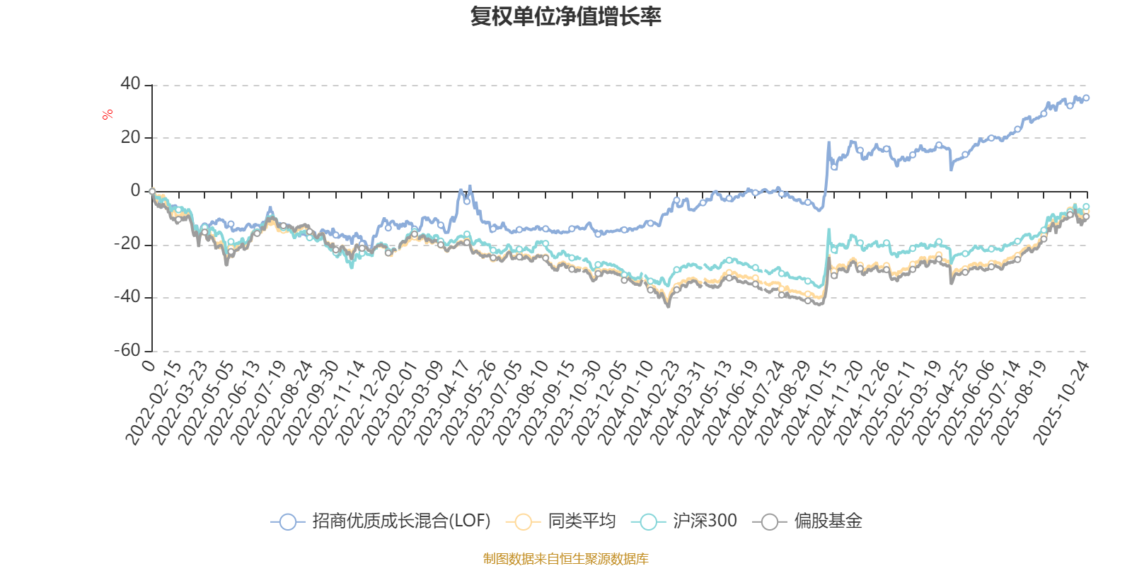 截至10月24日,招商优质成长混合(LOF)近三个月复权单位净值增长率为5.81%,位于同类可比基金104/130;近半年复权单位净值增长率为18.67%,位于同类可比基金94/130;近一年复权单位净值增长率为21.16%,位于同类可比基金84/130;近三年复权单位净值增长率为65.62%,位于同类可比基金7/124。