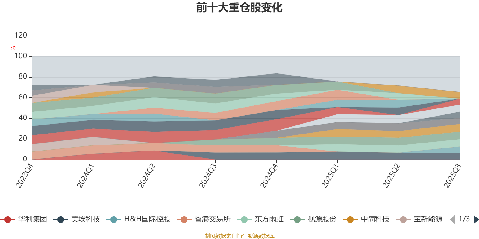 该基金持股集中度较高,近2年前十大重仓股集中度长期超过60%。截至2025年三季度末,基金十大重仓股分别是中简科技、视源股份、东方雨虹、申洲国际、新奥能源、美埃科技、H&H国际控股、联德股份、港华智慧能源、中国燃气。