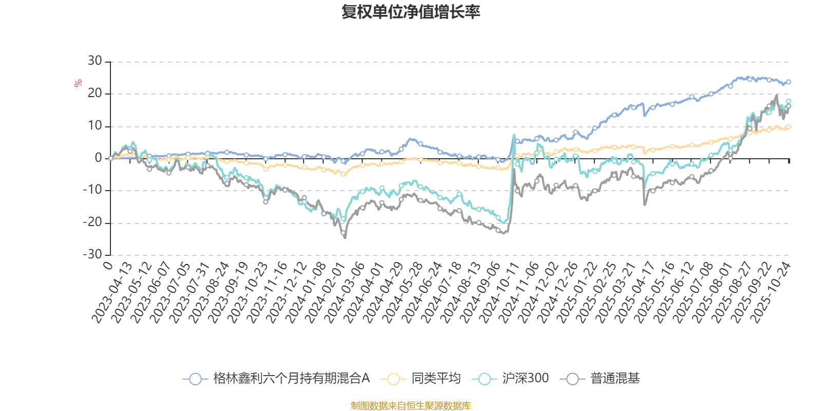 截至10月24日,格林鑫利六个月持有期混合A近三个月复权单位净值增长率为1.24%,位于同类可比基金433/629;近半年复权单位净值增长率为6.01%,位于同类可比基金257/629;近一年复权单位净值增长率为17.11%,位于同类可比基金36/623。