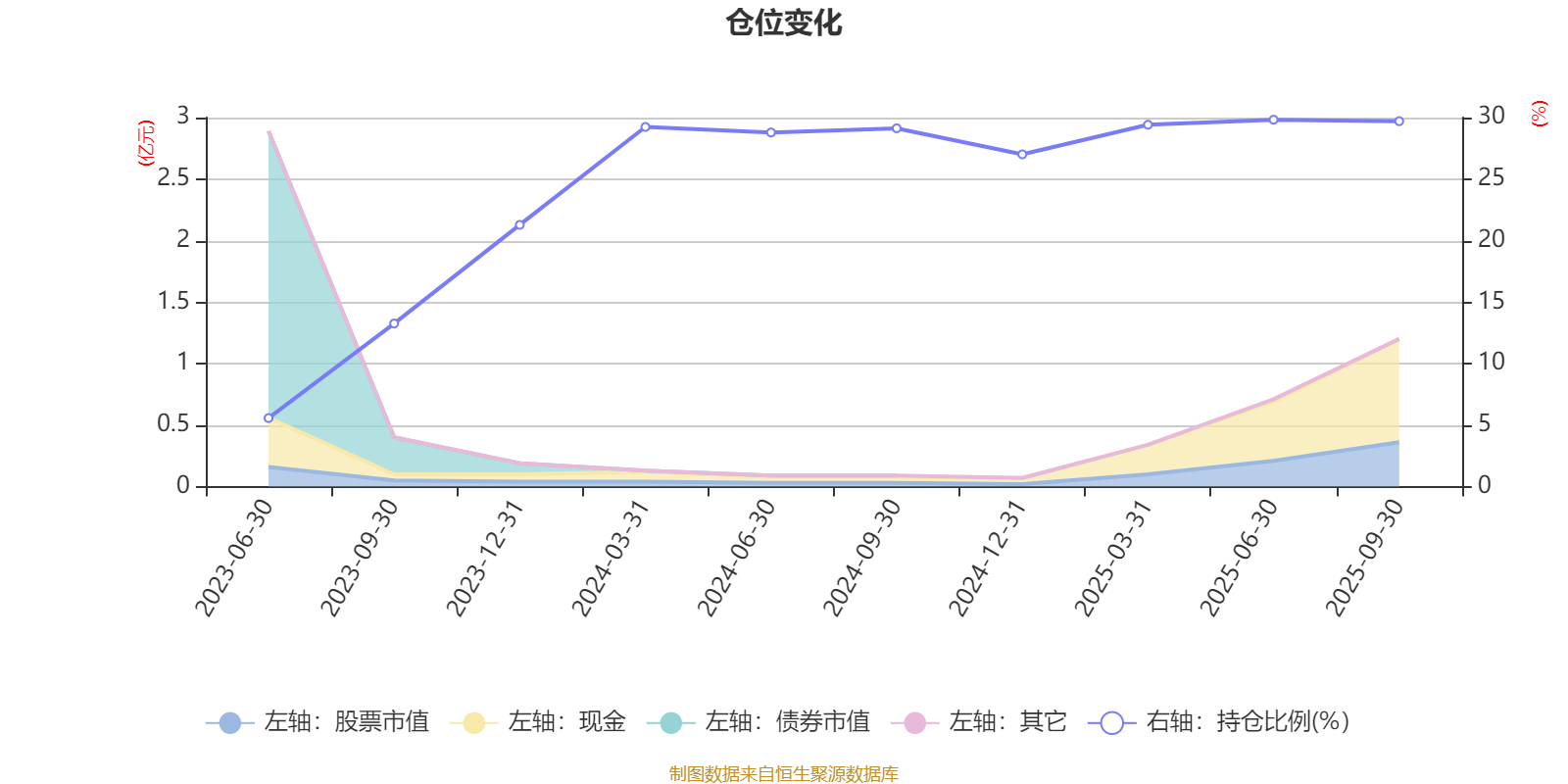 据定期报告数据统计,成立以来平均股票仓位为24.32%,同类平均为19.03%。2025年上半年末基金达到29.83%的最高仓位,2023年上半年末最低,为5.57%。