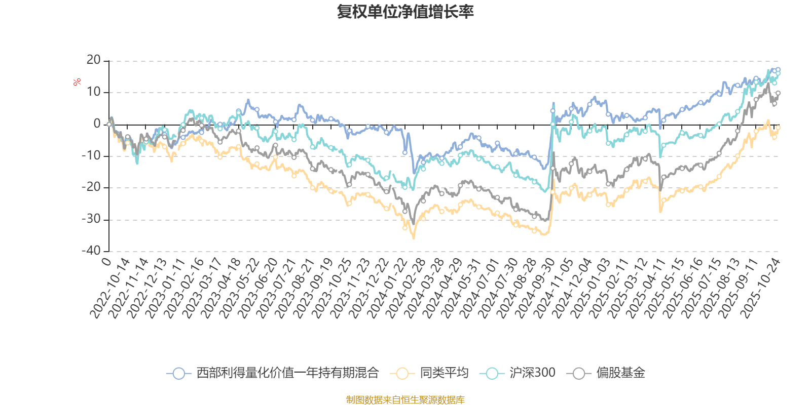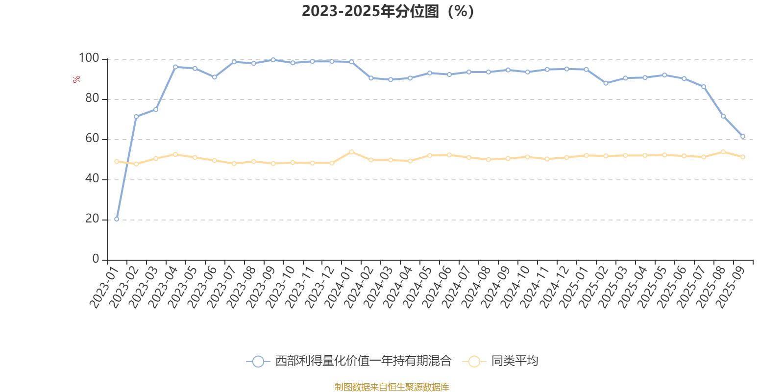 截至10月24日,西部利得量化价值一年持有期混合近三个月复权单位净值增长率为3.45%,位于同类可比基金586/689;近半年复权单位净值增长率为13.19%,位于同类可比基金575/688;近一年复权单位净值增长率为14.54%,位于同类可比基金513/653;近三年复权单位净值增长率为25.72%,位于同类可比基金98/363。