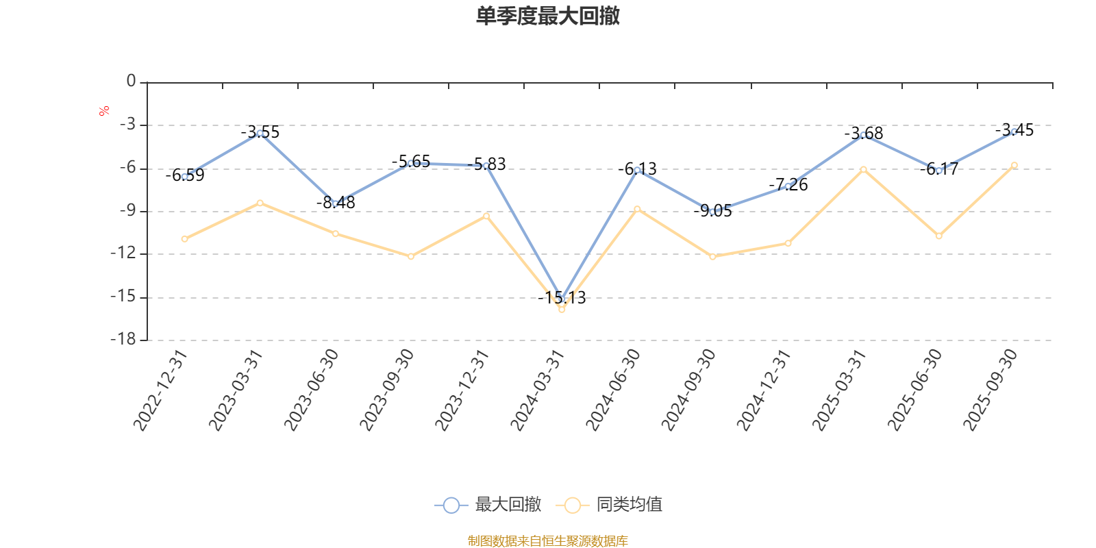 截至10月24日,基金近三年最大回撤为21.69%,同类可比基金排名30/365。单季度最大回撤出现在2024年一季度,为15.13%。