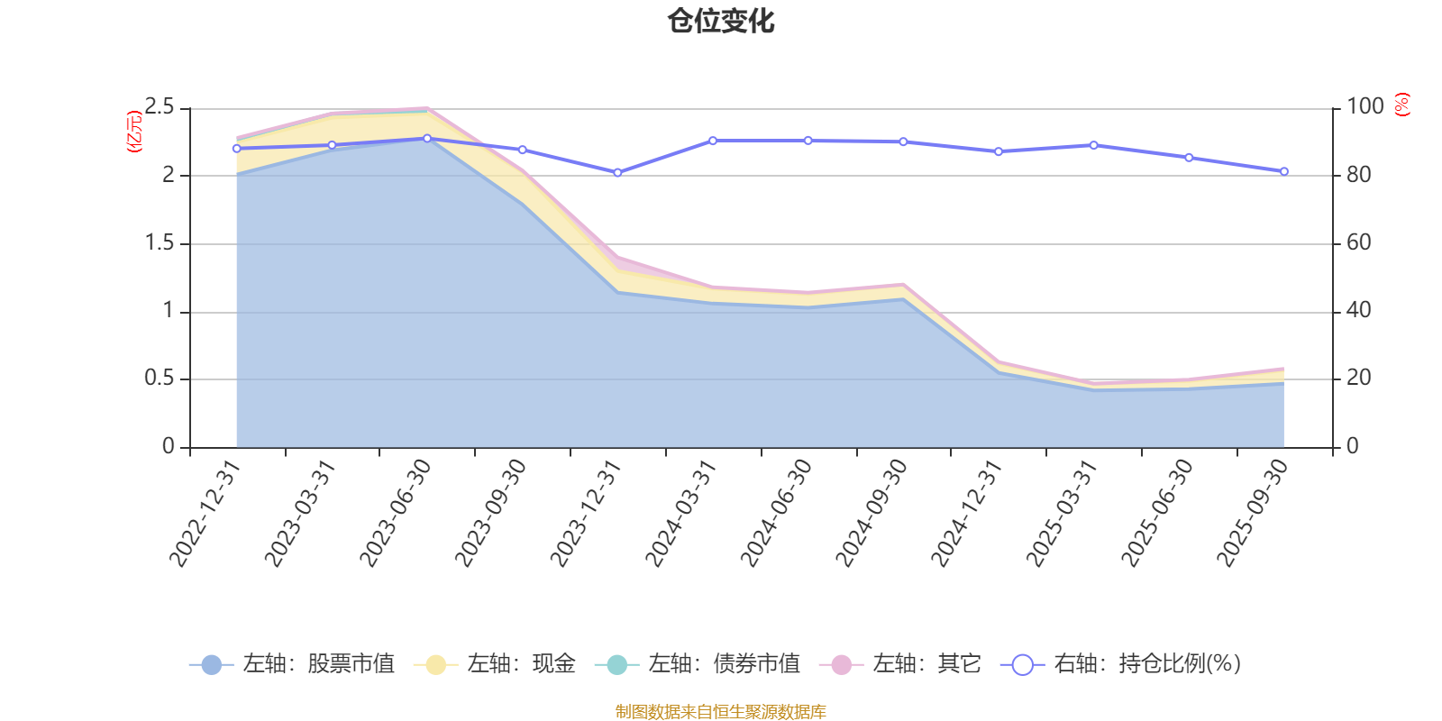 据定期报告数据统计,近三年平均股票仓位为87.6%,同类平均为83.5%。2023年上半年末基金达到91.1%的最高仓位,2023年末最低,为81%。