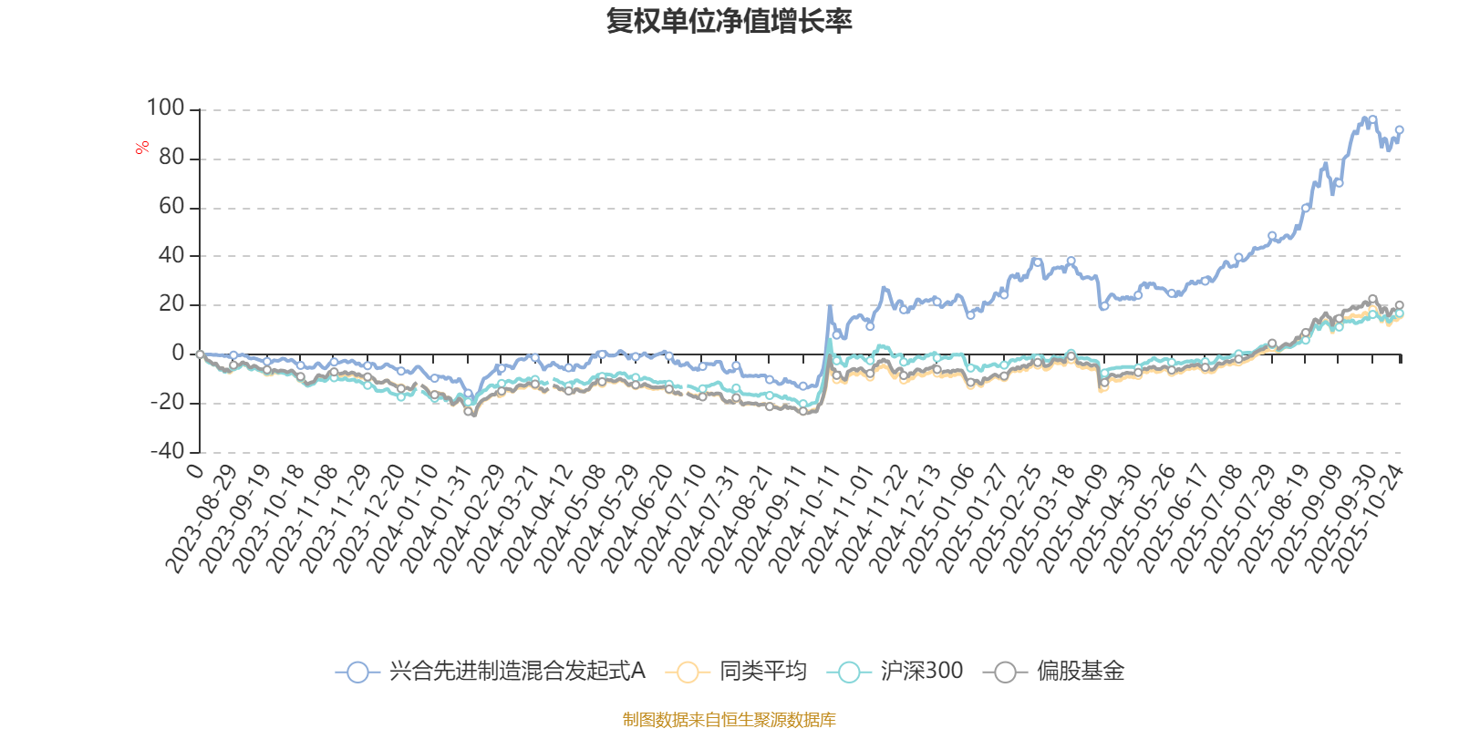 截至10月24日,兴合先进制造混合发起式A近三个月复权单位净值增长率为32.80%,位于同类可比基金58/689;近半年复权单位净值增长率为56.56%,位于同类可比基金39/688;近一年复权单位净值增长率为66.89%,位于同类可比基金30/653。