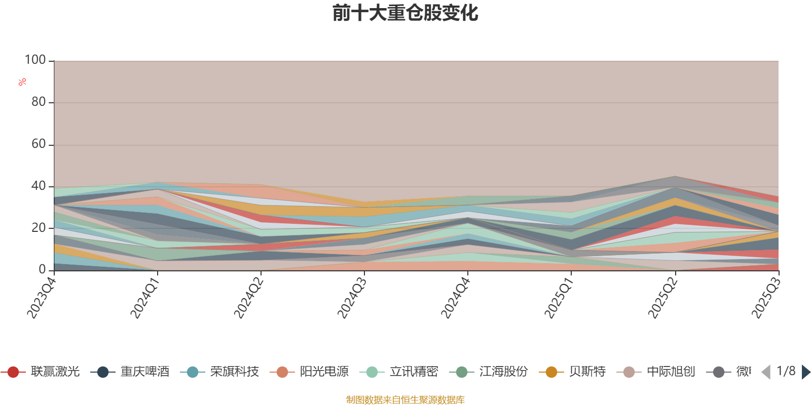 截至2025年三季度末,基金十大重仓股分别是北方华创、拓普集团、中微公司、亿纬锂能、联赢激光、图南股份、中芯国际、蓝思科技、科达制造、万兴科技。