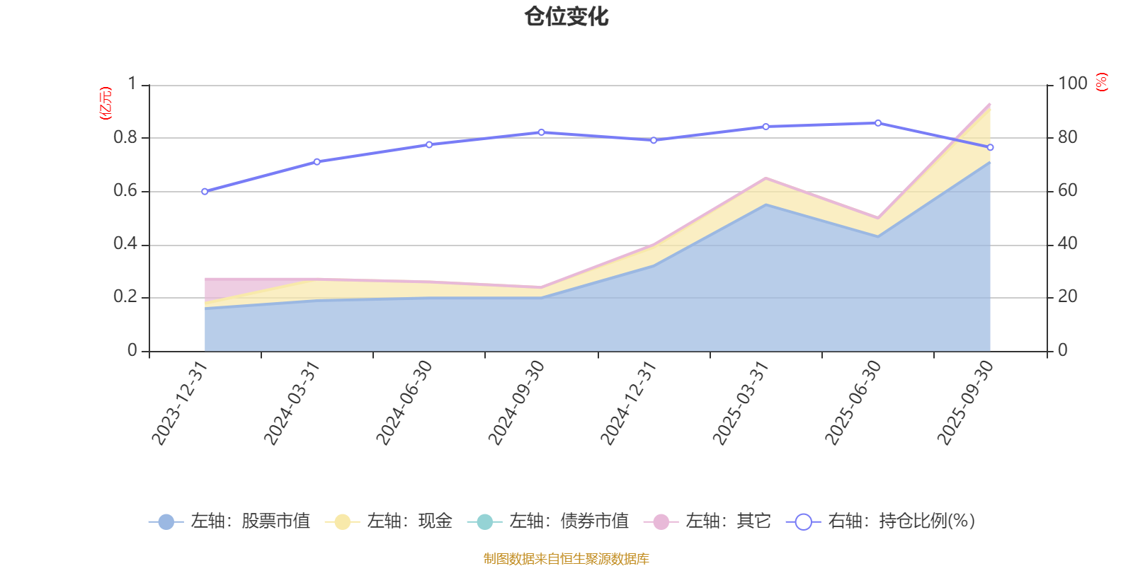 据定期报告数据统计,成立以来平均股票仓位为77.09%,同类平均为83.5%。2025年上半年末基金达到85.7%的最高仓位,2023年末最低,为59.97%。