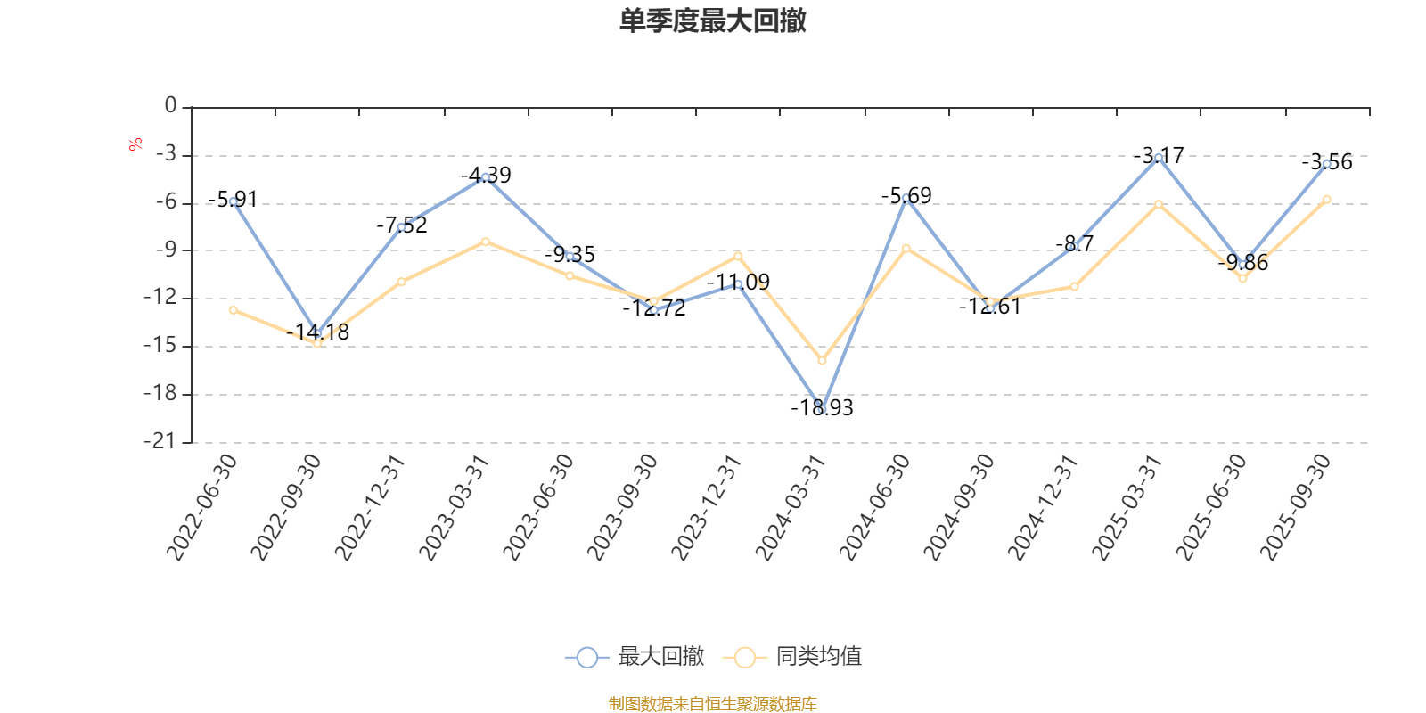 截至10月24日,基金近三年最大回撤为35.86%,同类可比基金排名153/365。单季度最大回撤出现在2024年一季度,为18.93%。