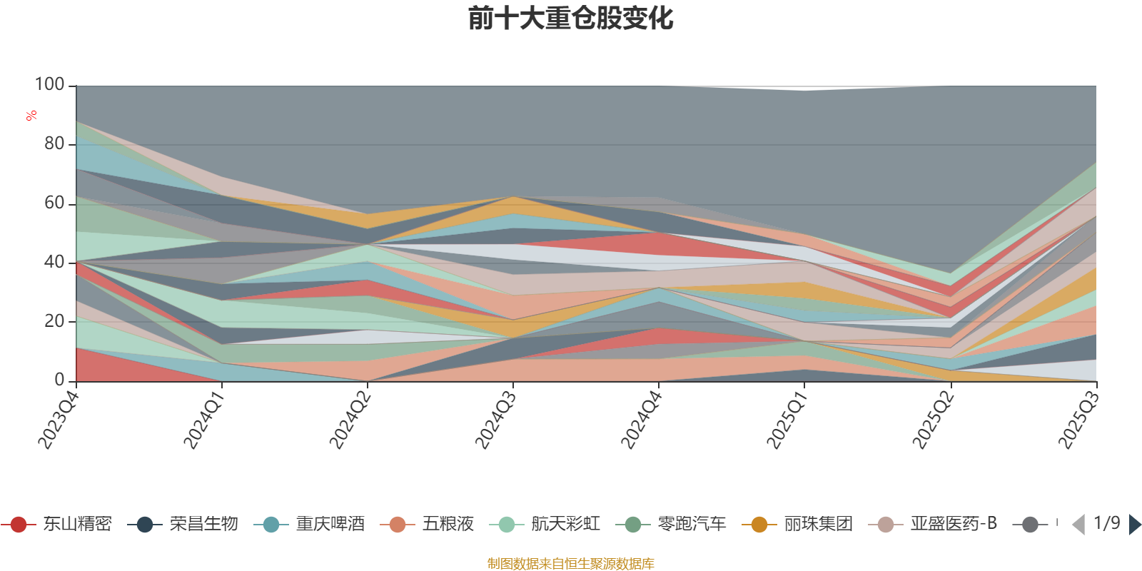 截至2025年三季度末,基金十大重仓股分别是阿里巴巴-W、腾讯控股、中国宏桥、紫金矿业、宁德时代、杰瑞股份、香港交易所、北方华创、紫光国微、福耀玻璃。