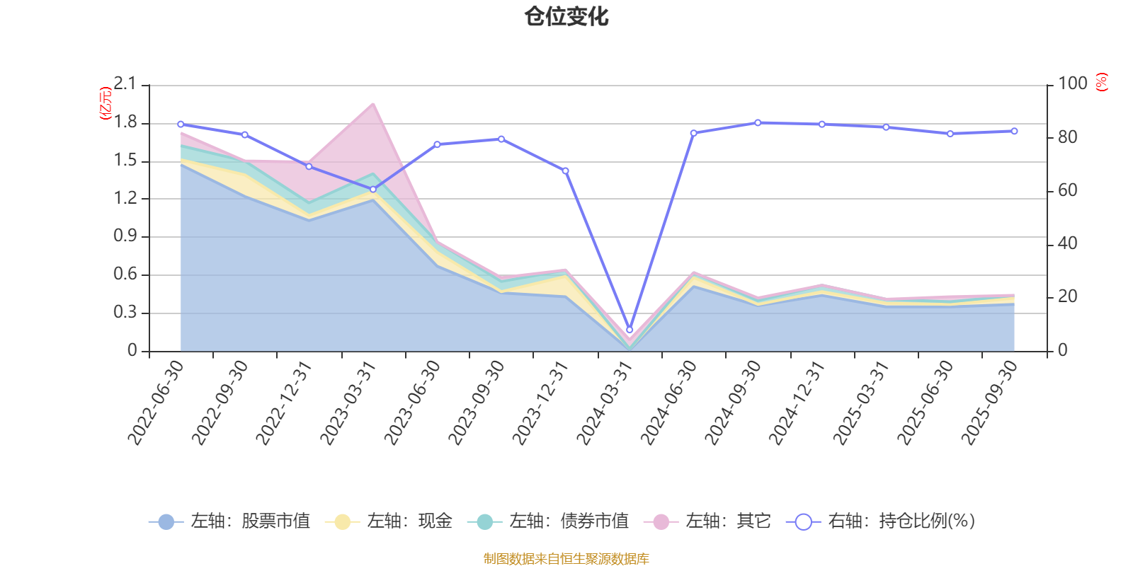 据定期报告数据统计,近三年平均股票仓位为72.06%,同类平均为83.5%。2024年三季度末基金达到85.82%的最高仓位,2024年一季度末最低,为8.08%。