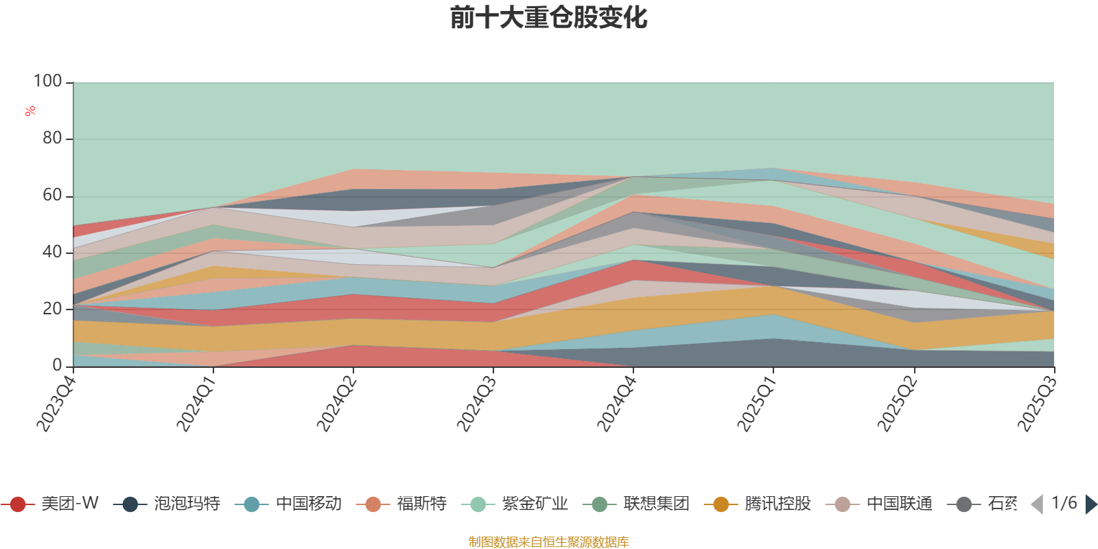 截至2025年三季度末,基金十大重仓股分别是阿里巴巴-W、腾讯控股、华虹半导体、高伟电子、泡泡玛特、蓝思科技、紫金矿业、快手-W、药明生物、中芯国际。