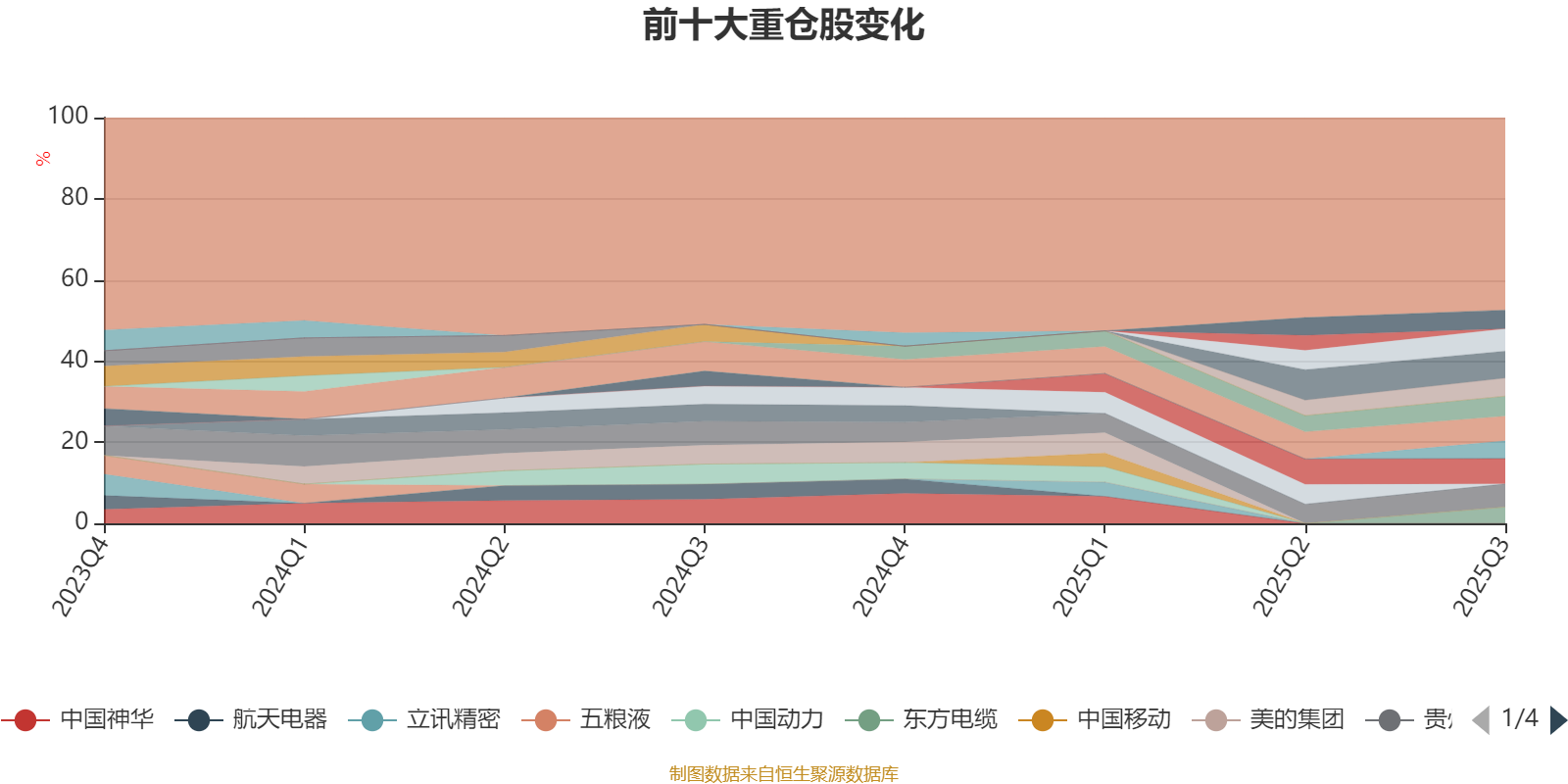 截至2025年三季度末,基金十大重仓股分别是中国平安、宁德时代、海尔智家、贵州茅台、杭州银行、恒瑞医药、晶方科技、中天科技、金山办公、东方电缆。