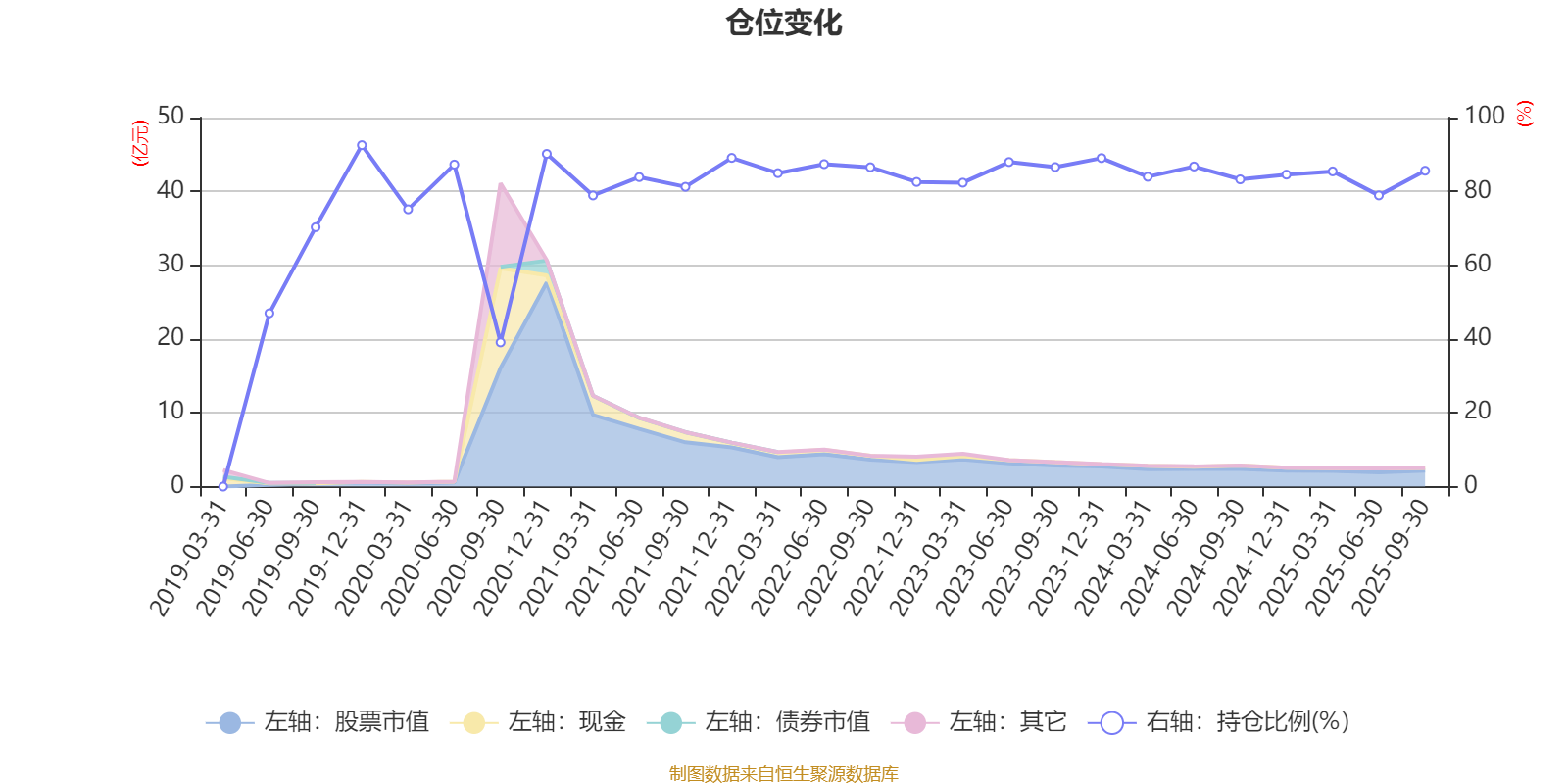 据定期报告数据统计,近三年平均股票仓位为84.75%,同类平均为72.16%。2019年末基金达到92.53%的最高仓位,2020年三季度末最低,为39.08%。