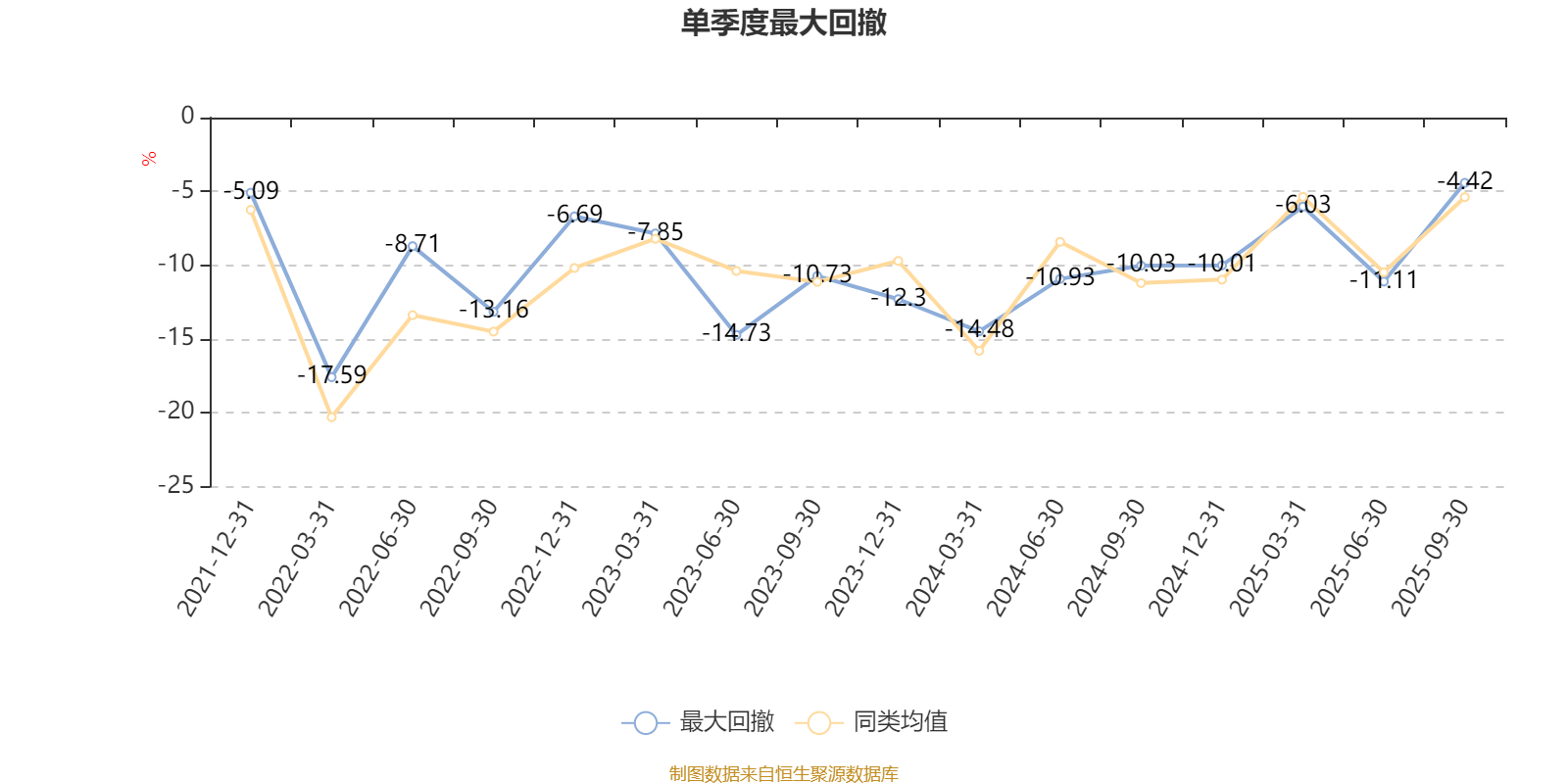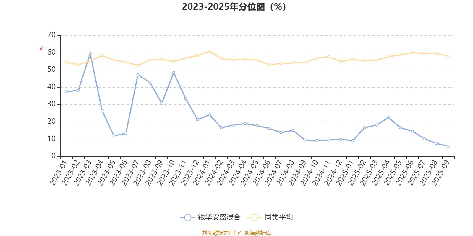 通过所选区间该基金净值增长率分位图,可以观察该基金与同类基金业绩比较情况。图为坐标原点到区间内某时点的净值增长率在同类基金中的分位数。