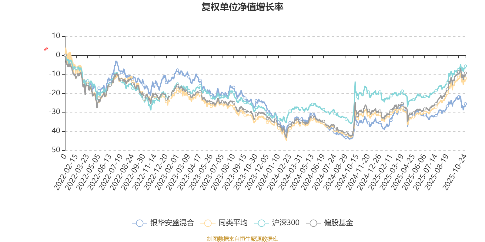 截至10月24日,银华安盛混合近三个月复权单位净值增长率为4.33%,位于同类可比基金231/265;近半年复权单位净值增长率为9.05%,位于同类可比基金250/265;近一年复权单位净值增长率为15.36%,位于同类可比基金211/265;近三年复权单位净值增长率为-6.68%,位于同类可比基金226/253。