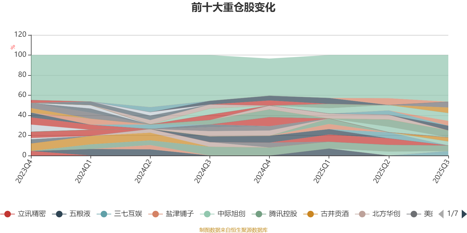 截至2025年三季度末,基金十大重仓股分别是阿里巴巴-W、小米集团-W、新易盛、东鹏饮料、腾讯控股、拓普集团、恒生电子、三七互娱、长城汽车、寒武纪。