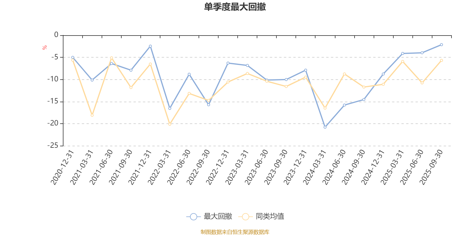 通过所选区间该基金净值增长率分位图,可以观察该基金与同类基金业绩比较情况。图为坐标原点到区间内某时点的净值增长率在同类基金中的分位数。