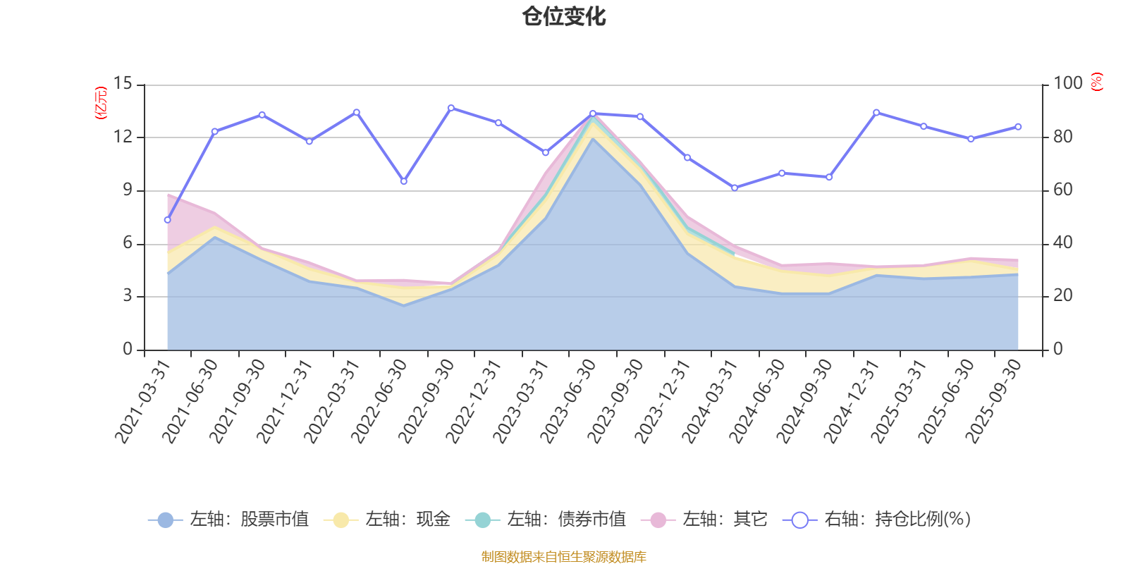 据定期报告数据统计,近三年平均股票仓位为78.33%,同类平均为85.59%。2022年三季度末基金达到91.22%的最高仓位,2021年一季度末最低,为49.04%。