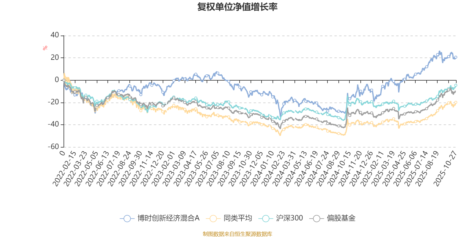 截至10月27日,博时创新经济混合A近三个月复权单位净值增长率为2.65%,位于同类可比基金574/621;近半年复权单位净值增长率为19.57%,位于同类可比基金476/619;近一年复权单位净值增长率为38.51%,位于同类可比基金193/611;近三年复权单位净值增长率为28.15%,位于同类可比基金174/518。